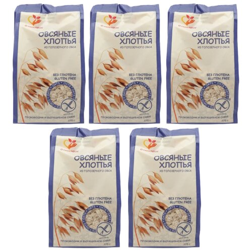 Хлопья овсяные органические из голозерного овса, без глютена, "Сташевское", 5 упаковок по 375 г