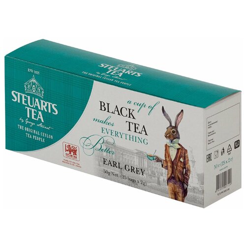 Чай черный листовой Steuarts Earl Grey пакетики на чашку 25шт