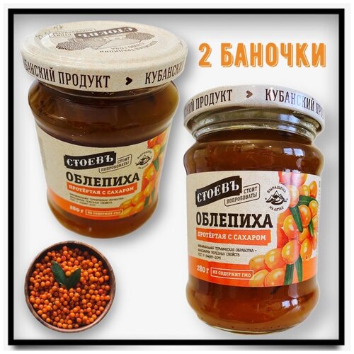 Облепиха потертая с сахаром Стоевъ. Джем фруктовый облепиховый 280 гр 2 шт