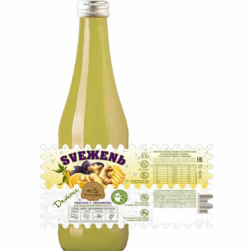 Столбушино Свежень, низкоуглеводный сокосодержащий напиток, имбирь с лимоном и мёдом, без сахара 0,5л