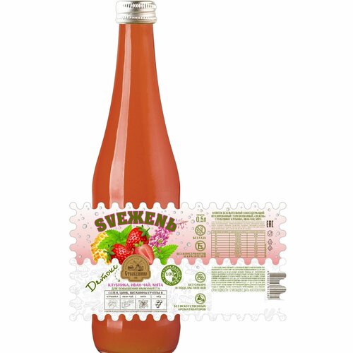 Столбушино Свежень, низкоуглеводный сокосодержащий напиток, клубника, иван-чай, мята и мёд, без газа и сахара, 0,5л