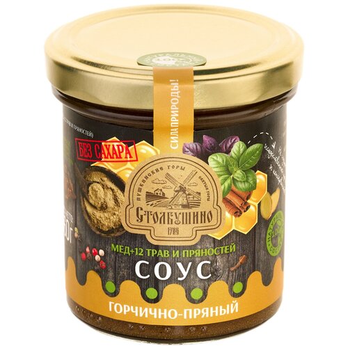 Соус горчично-пряный со сбитнем (мед + 12трав и пряностей), без сахара "Столбушино" 160 гр