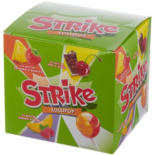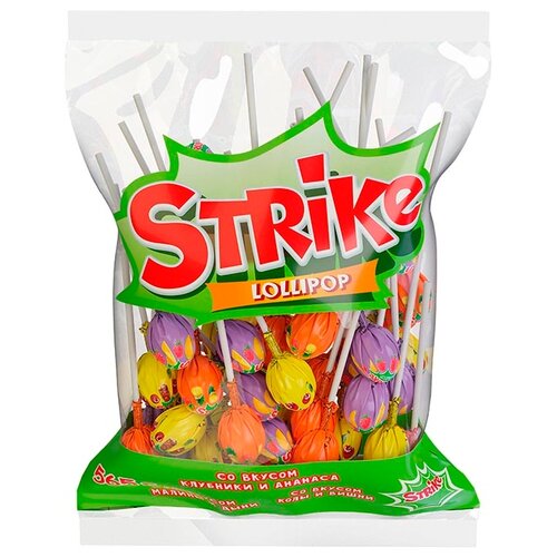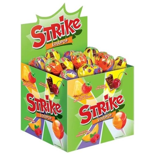 Карамель на палочке ассорти леденцы Strike, 50 шт по 11 г