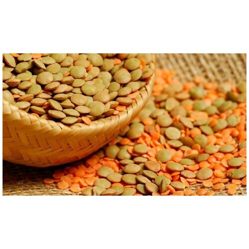 Набор из 2 круп бобовых — чечевица красная и зеленая по 1 кг / Упаковка 2 кг / Чечевица для гарниров, первых и вторых блюд
