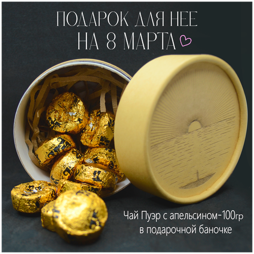 Китайский Прессованный Черный Чай Шу Пуэр Мини Точа С Апельсином 50г, Подарок На 8 Марта, Для Женщины, Девушки
