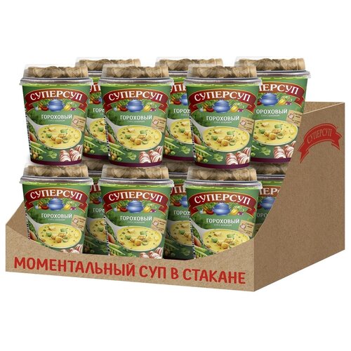 Суперсуп "Гороховый с беконом+гренки" 45г / 12 стаканов в коробке
