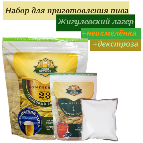 Охмелённый экстракт Своя Кружка Жигулёвский Лагер + неохмелённый солодовый экстракт для светлых сортов + декстроза 200 г