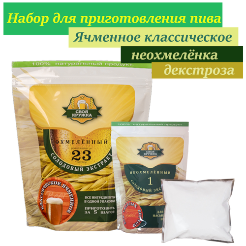 Охмеленный экстракт Своя Кружка "Ячменное классическое" + неохмеленный экстракт для светлых сортов + декстроза 200 г
