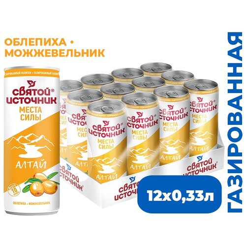 Вода Святой Источник Места силы Алтай газированная 0,33 с ароматом облепихи, жимолости и экстрактом можжевельника 12 штук железная банка
