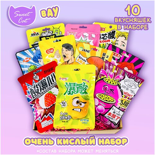 Sweet Cat Shop / Кислые конфеты / Азиатский бокс / Набор кислых сладостей Подарок на 8 марта 23 февраля 14 февраля