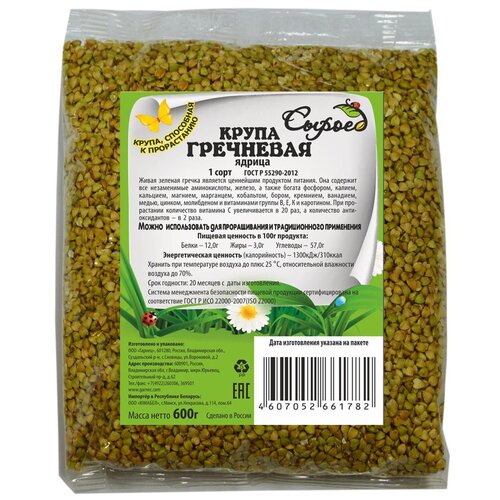 Крупа гречневая ядрица ТМ Сыроед 600г П.пак Большой, шт