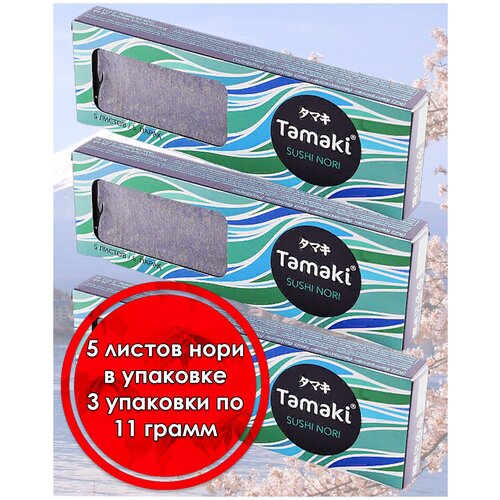 Водоросли нори для суши TAMAKI сушеные прессованные необжаренные, 3 упаковки.