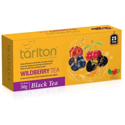 Чай черный цейлонский Tarlton Wildberry, вкус лесных ягод, 25 пак., Шри-Ланка