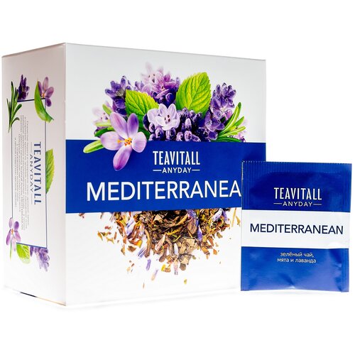 Чайный напиток TeaVitall Anyday «Mediterranean» Средиземноморье. Масса нетто: 68,4 г (38 фильтр-пакетов × 1,8 г). GreenWay