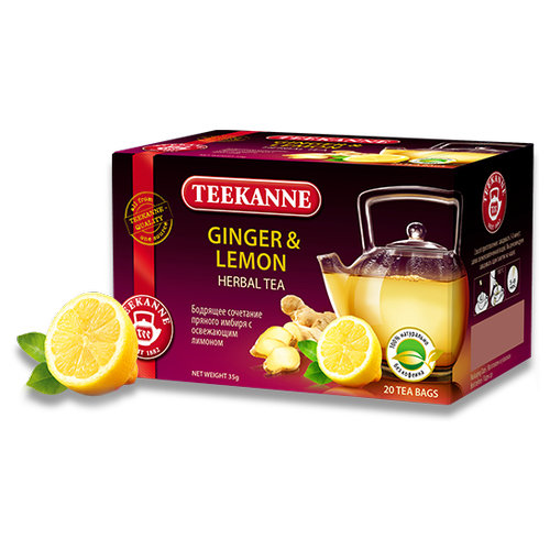 Чайный напиток травяной Teekanne Ginger & lemon в пакетиках, 20 пак.