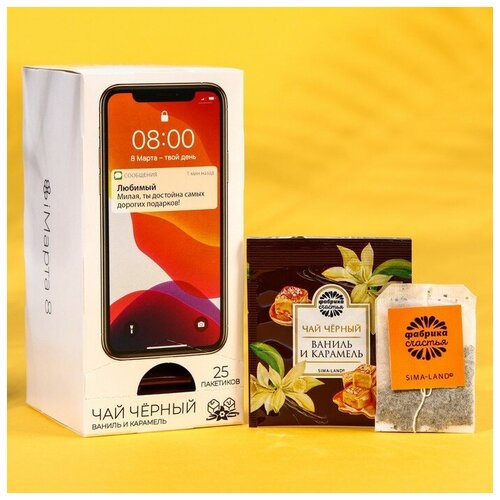Подарочный чёрный чай «Любимый», вкус: ваниль и карамель, 25 пакетиков х 1,8 г.