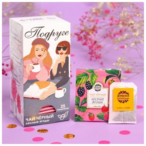 Подарочный чёрный чай «Подруге», вкус: лесные ягоды, 25 пакетиков х 1,8 г.