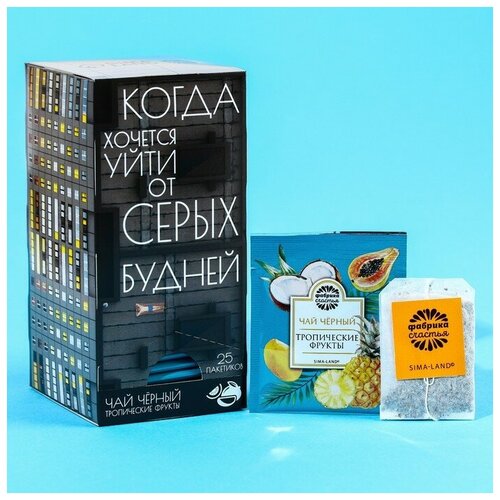 Подарочный чёрный чай «Хочется уйти от серых будней», вкус: тропические фрукты, 25 пакетиков х 1,8 г.