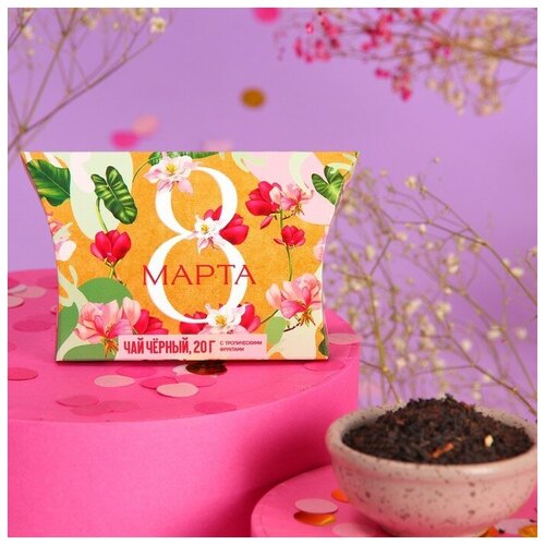 Подарочный чёрный чай «8 марта» с тропическими фруктами, 20 г.