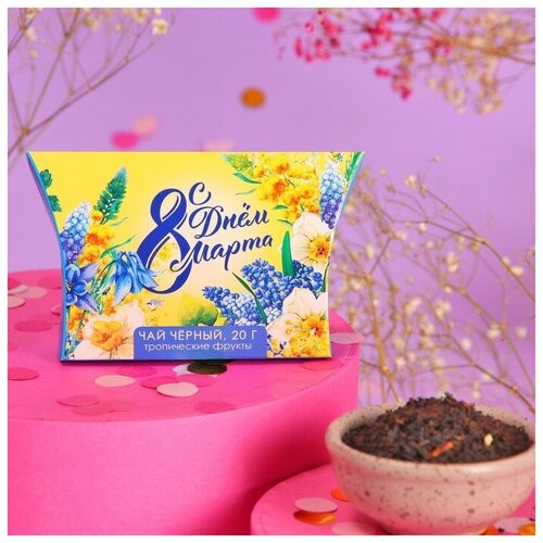 Подарочный чёрный чай «С днём 8 марта» с тропическими фруктами, 20 г.