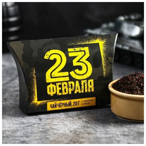 Подарочный чёрный чай «23 февраля» с лимоном и мятой , 20 г.