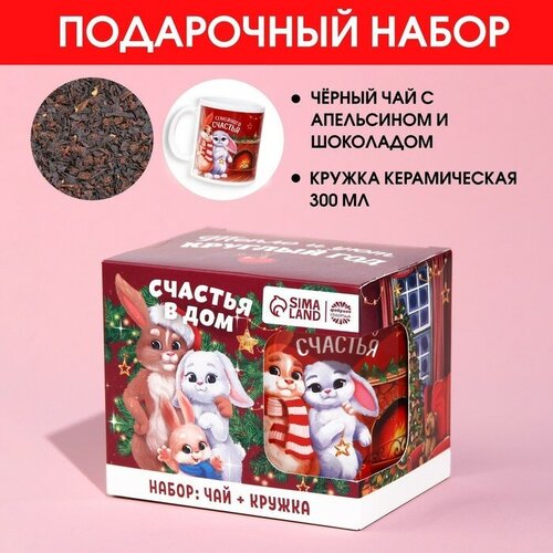 Подарочный набор «Счастья в дом»: чай чёрный с апельсином и шоколадом 50 г., кружка 300 мл.