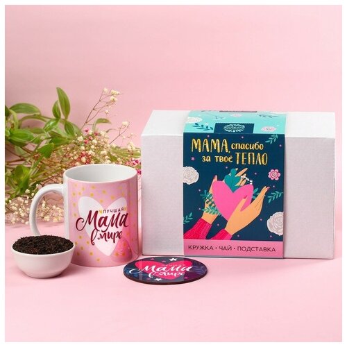 Подарочный набор «Маме»: кружка 350 мл, подставка, чай со вкусом лесных ягод 50 г.