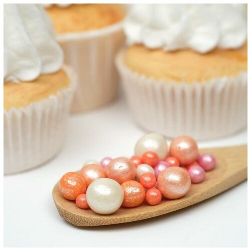 Посыпка кондитерская ТероПром 5132244 "Жемчуг" зерна риса в цветной кондитерской глазури, персик/розов/сереб, 50 г