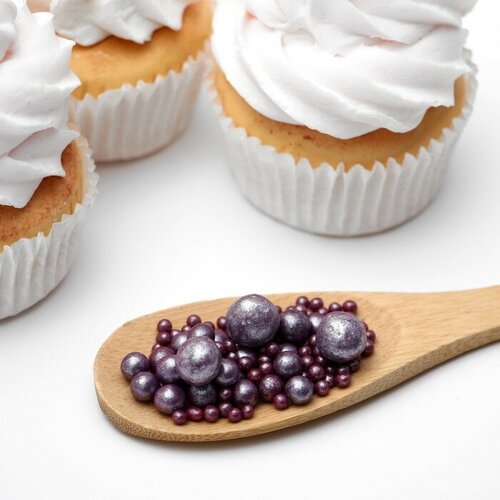 Посыпка кондитерская ТероПром 4929374 с мягким центром "Жемчуг" Сиреневый 2-5 мм 50г