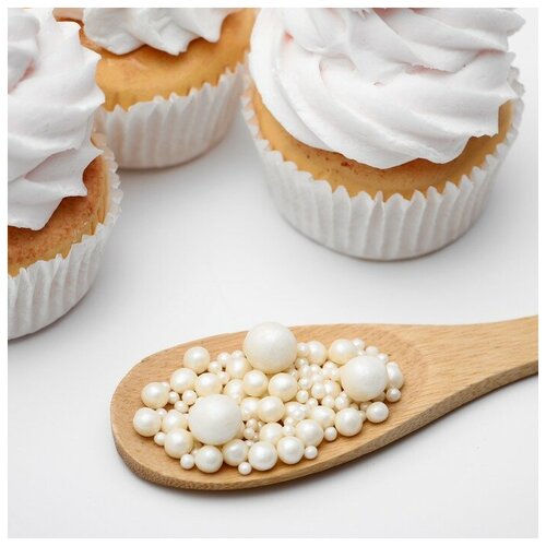 Посыпка кондитерская ТероПром 5070125 "Жемчуг" мягкая, в цветной кондитерской глазури, серебро, 50 г