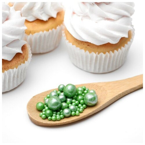 Посыпка кондитерская ТероПром 5070124 "Жемчуг", взорванные зерна риса, зеленый, 50 г