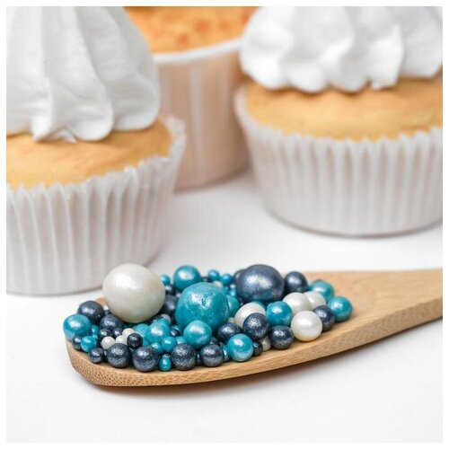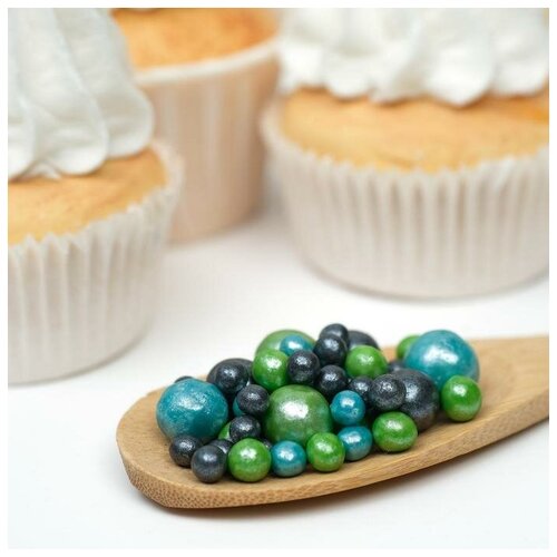 Посыпка кондитерская ТероПром 5132230 "Жемчуг", тёмная бирюза, серебро, 50 г
