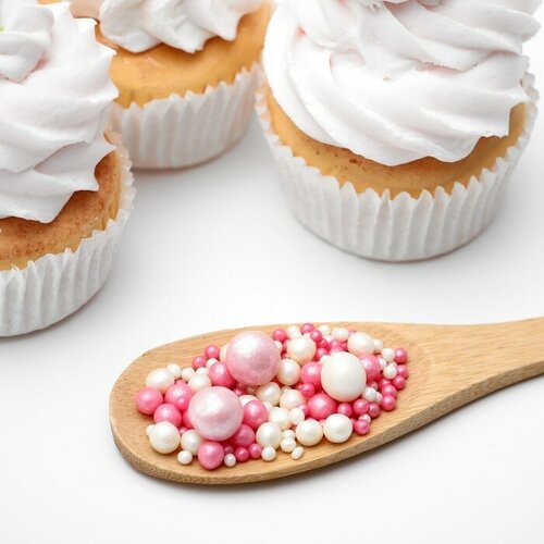 Посыпка кондитерская ТероПром 5070126 "Жемчуг", взорванные зерна риса, бело-розовый микс, 50 г
