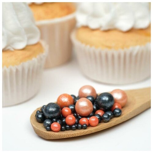 Посыпка кондитерская ТероПром 5132240 "Жемчуг", взорванные зерна риса, персик, черный №167, 50 г
