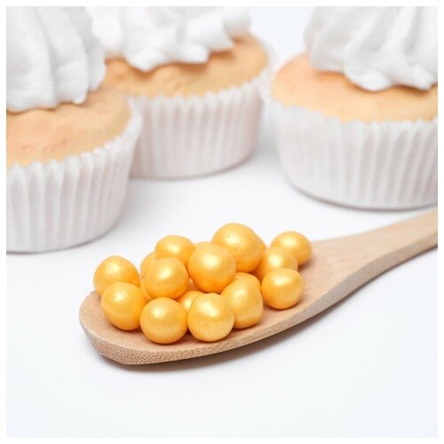 Посыпка кондитерская ТероПром 4929386 с мягким центром "Жемчуг" Золото 12-13 мм 50г