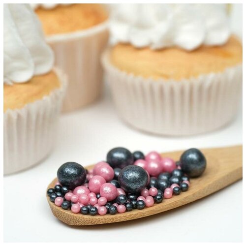 Посыпка кондитерская ТероПром 5132246 "Жемчуг", взорванные зерна риса, розово-черный №183, 50 г