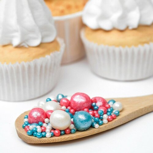 Посыпка кондитерская ТероПром 5138515 "Жемчуг" зерна риса в цветной кондитерской глазури, тем.бирюза,розовый,серебро, 50 г