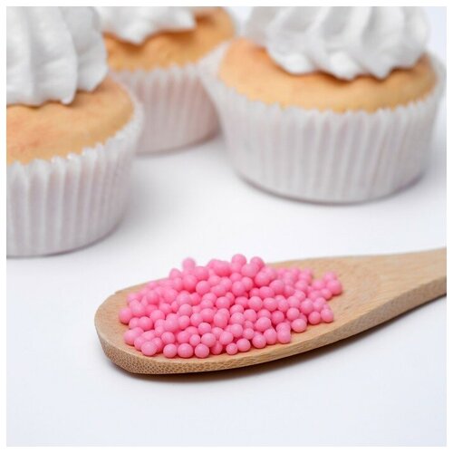 Посыпка кондитерская ТероПром 4929377 в кондитерской глазури "Жемчуг" Малиновый 2-5 мм 50г