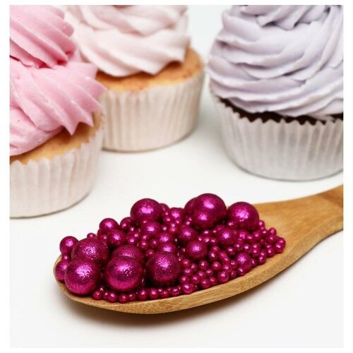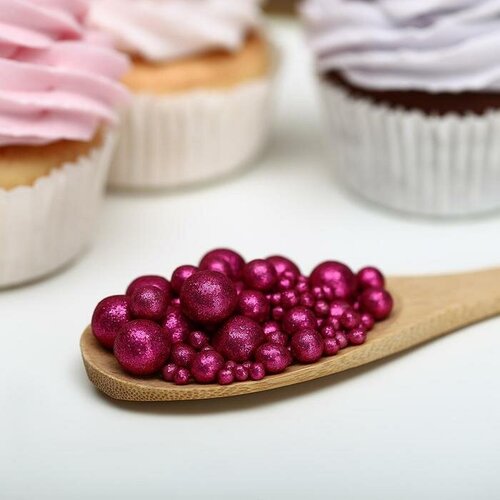 Посыпка кондитерская ТероПром 5697880 с глиттером «Блеск» Фуксия 50 г