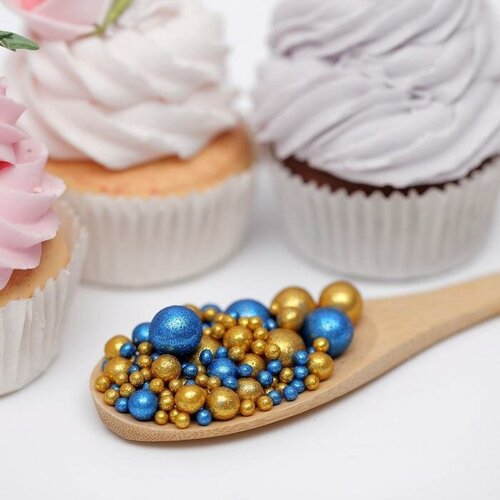 Посыпка кондитерская ТероПром 6770540 с глиттером «Блеск»: золотой, синий, 50 г