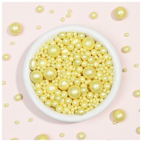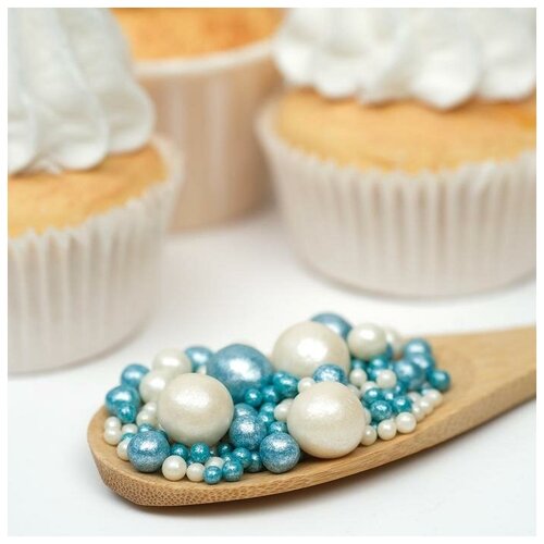 Посыпка кондитерская ТероПром 7082372 "Жемчуг" в цветной кондитерской глазури белоснежный 12-13 мм, 50г