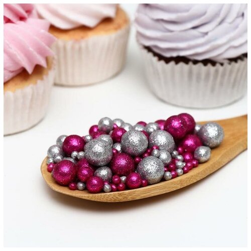 Посыпка кондитерская ТероПром 7082383 с глиттером «Блеск»: фуксия, серебро, 1,5 кг