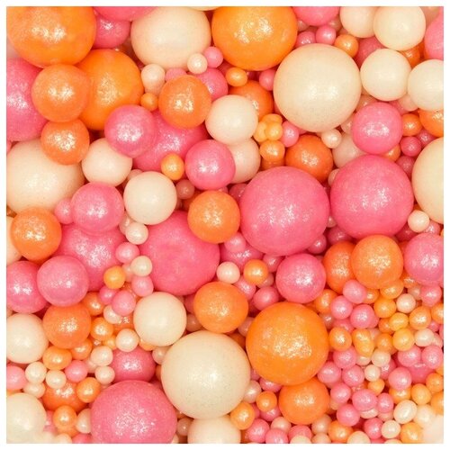 Посыпка кондитерская ТероПром 7187717 в цветной кондитерской глазури жемчуг персиковый, розовый, серебро