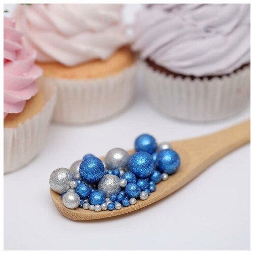 Посыпка кондитерская ТероПром 6770531 с глиттером «Блеск»: синий, серебро, 50 г