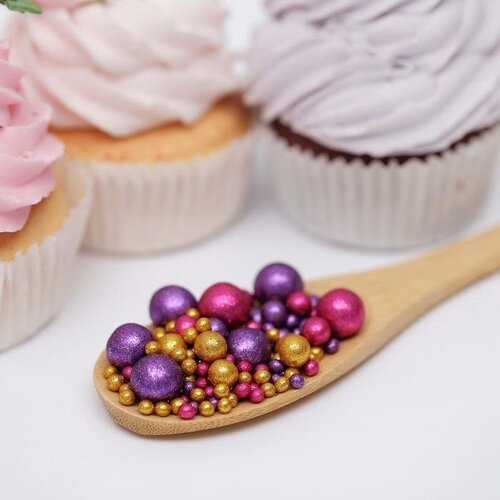 Посыпка кондитерская ТероПром 6770536 с глиттером «Блеск»: золотой, фиолетовый, фуксия, 50 г