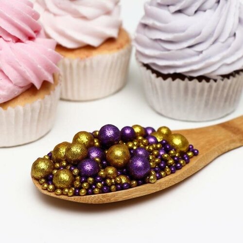 Посыпка кондитерская ТероПром 7082393 с глиттером «Блеск»: золотой, фиолетовый, 1,5 кг
