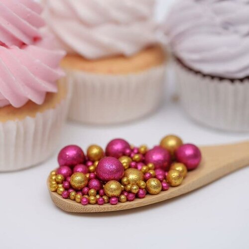 Посыпка кондитерская ТероПром 6770541 с глиттером «Блеск»: золотой, фуксия, 50 г