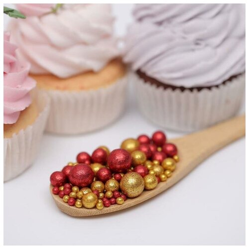 Посыпка кондитерская ТероПром 6770539 с глиттером «Блеск»: золотой, красный, 50 г