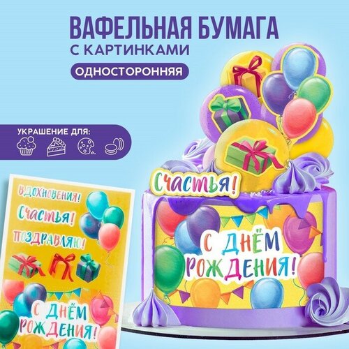 Съедобные цветные картинки ТероПром 9209250 на вафельной бумаге «С днём рождения», 1 лист А5