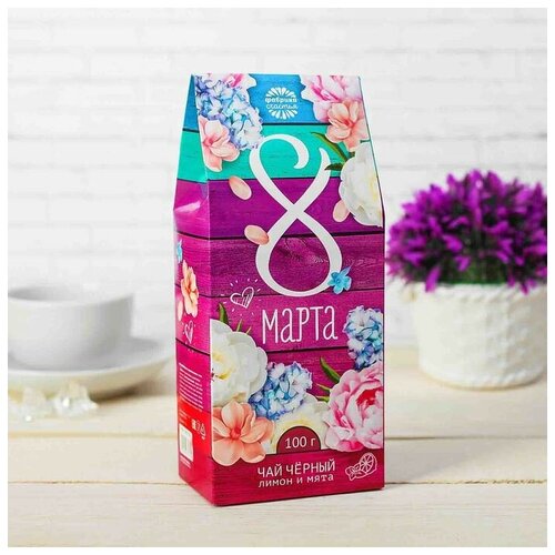 Чай чёрный «8 Марта»: с ароматом лимона и мяты, 100 г.